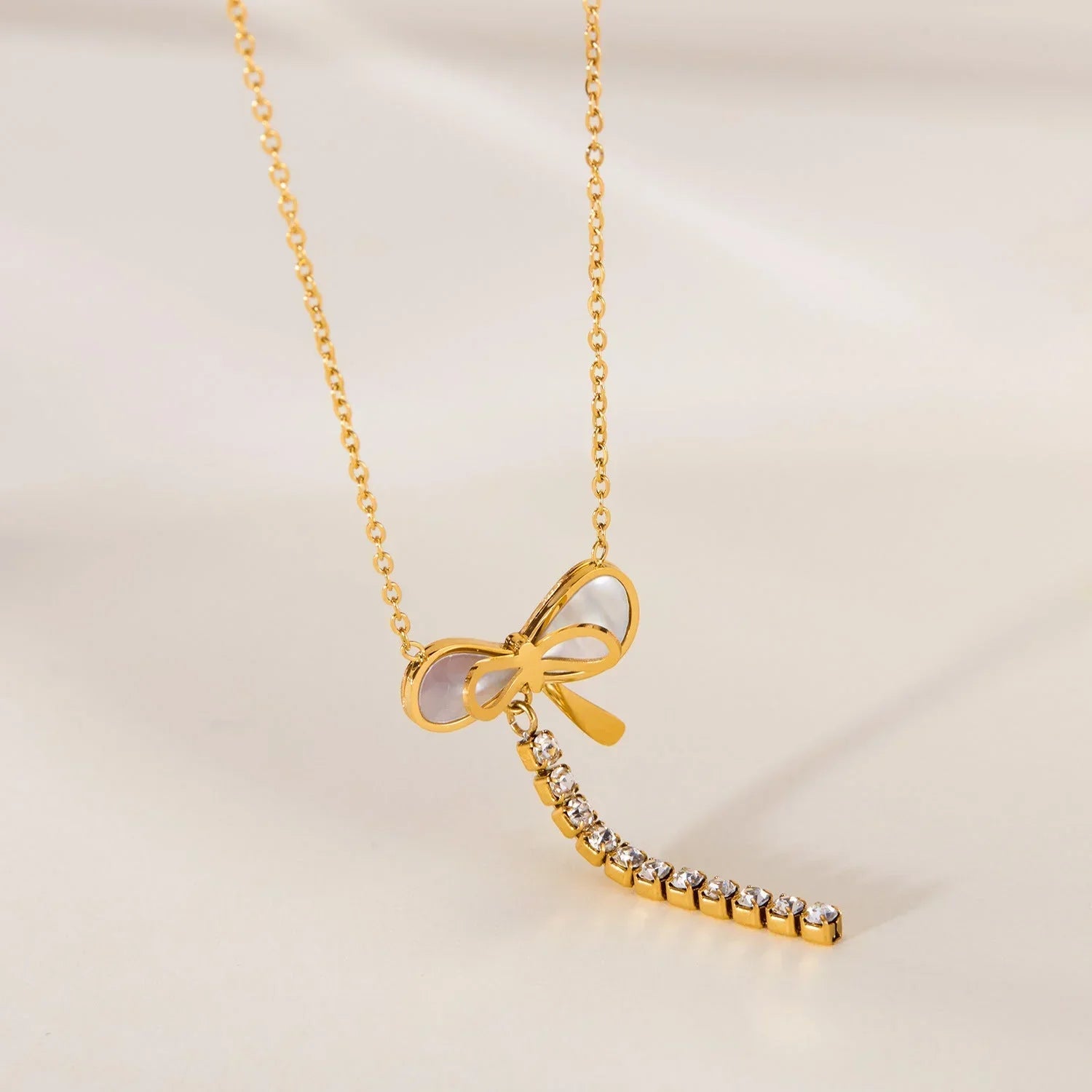 Necklace Female Titanium Steel Mother Shell Bow Tassel
